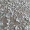 Clusters of tiny lasercut 3D flowers with pearl centres appliqued on embroidered soft tulle – one way design